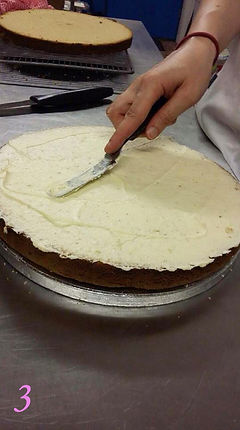 To have the effect you see in the picture, we need 4 layers. Bake your 2 layers of Victoria Sponge twice, using the 2 8" sandwich tins you have at home. Don't worry, the process is very fast and easy. Normally, 2 layers of Victoria Sponge of these dimensions take only 20 minutes to bake at 160C fan-assisted oven. Repeat the process in order to obtain 4 layers.
